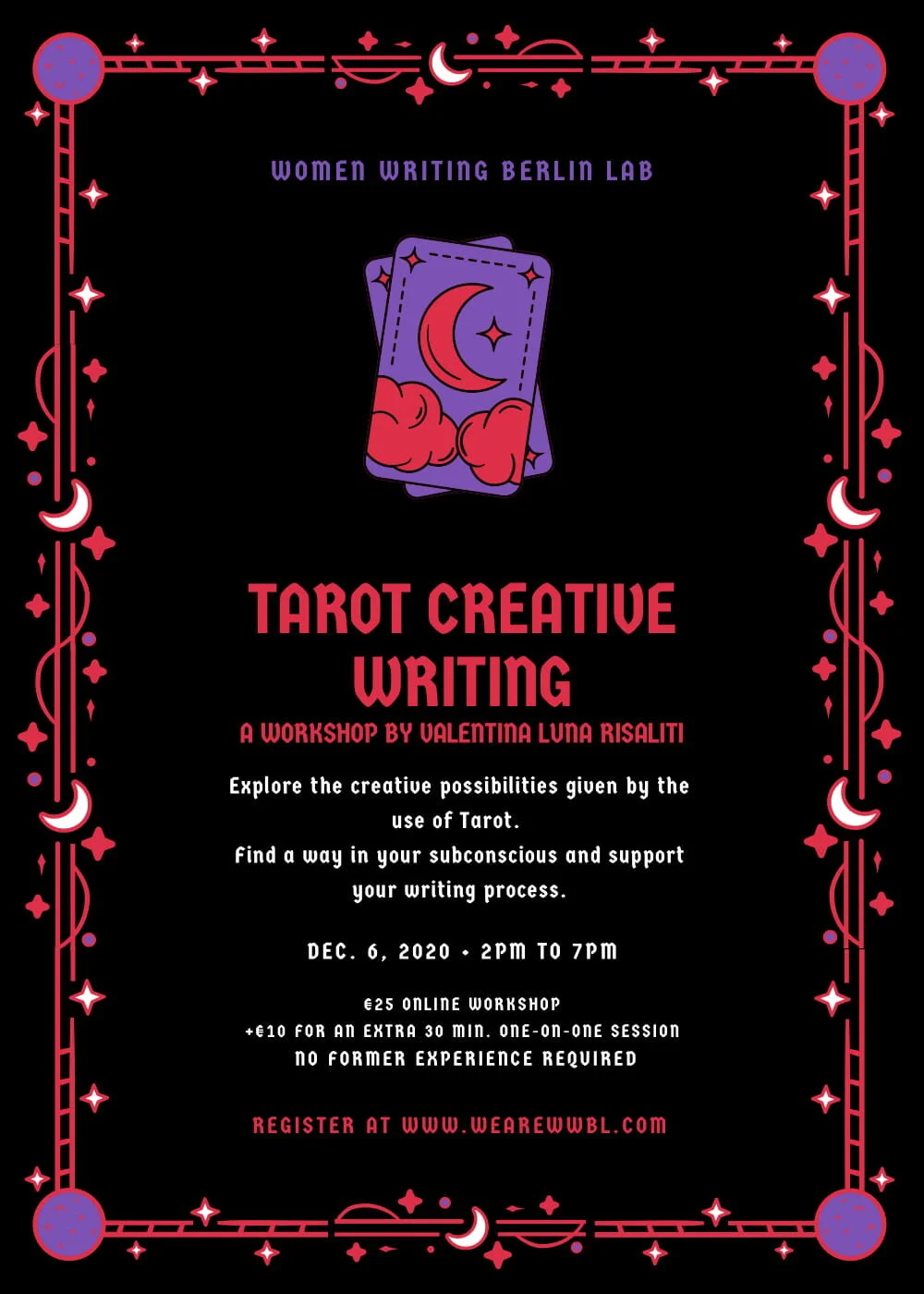 The workshop aims to explore the infinite creative possibilities given by the personalized use of Tarot cards and wishes to provide amateur, emerging and professional writers with an unprecedented medium of expression to be used in their creative process.